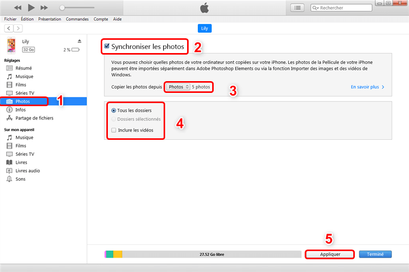 Vous voulez profiter d’iTunes pour envoyer quelques fichiers sur votre mobile ? Malheureusement, ce logiciel n’assure pas le transfert des données Samsung vers iPhone. Cependant, vous pouvez diviser l’opération en deux étapes. Il faut, d’abord, copier les fichiers à transférer à partir du Samsung vers l’ordinateur. Puis, laissez iTunes faire le reste.
